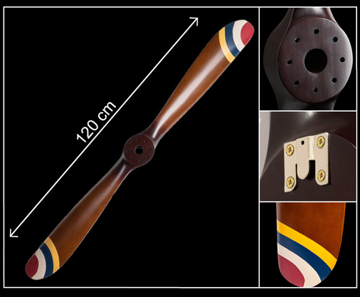 Hélice Vintage en Bois Dimensions 120 x 13.5 x 6.5 cm - Couleur Bois / Rouge / Blanc / Bleu / Jaune Fixation murale facile 169,95 € TTC / Incl. Taxes