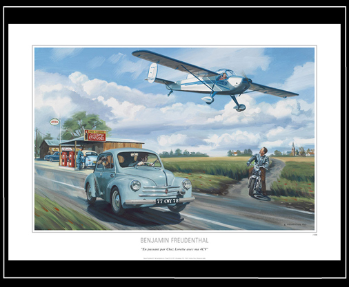 Reproduction d'une peinture originale de Benjamin Freudenthal Renault 4CV & NC.858 70 x 50 cm - Papier 300 g/m2 Série limitée 350 exemplaires numérotés et signés 34,95 € TTC / Incl. Taxes
