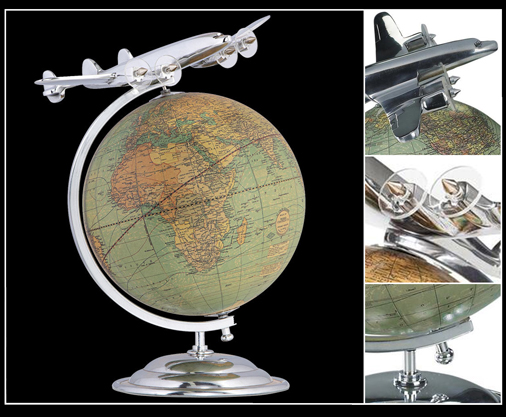 Avion sur Globe Terrestre - 22 x 26.5 x 31 cm Livré avec socle aluminium 114,95 € TTC / Incl. Taxes