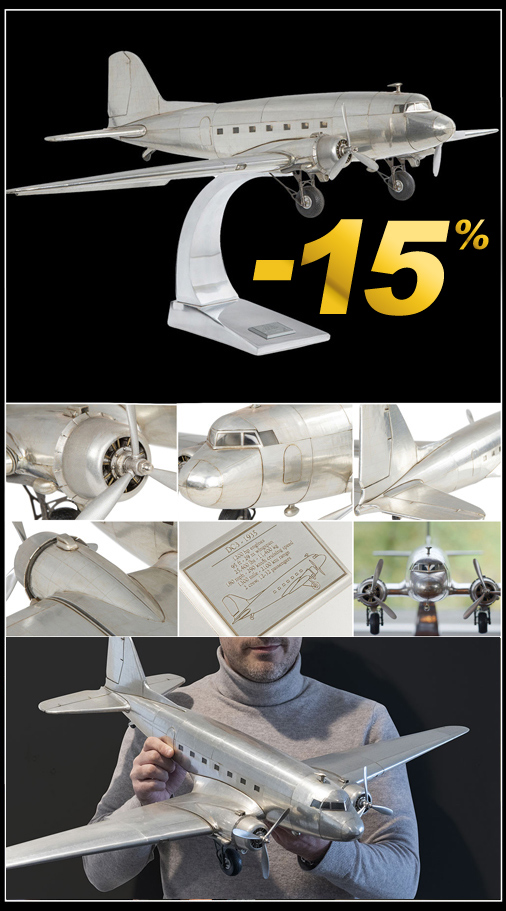 Douglas DC3 1935 Plane with Aluminium Base - 1 : 15 Size 101 x 67 x 40 cm