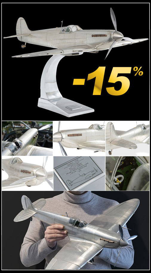 Avion Spitfire Supermarine 1936 - 19 x 20 x 14.5 cm Livré avec socle aluminium 64,95 € TTC / Incl. Taxes