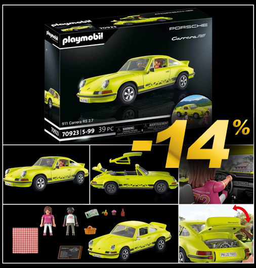 Playmobil Porsche 911 Carrera 2.7 avec Figurines Capot arrière ouvrant - Toit amovible - Inclus 2 figurines femme / homme Divers accessoires intégrés - Couleur : Jaune - Matière : 100% plastique Porsche WAP0408030NRS2