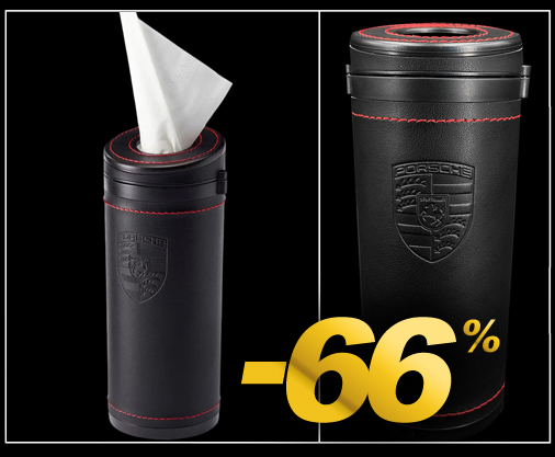 Boîte de Mouchoirs Porsche Extérieur 100% cuir de vachette - Intérieur résine - Surpiqûres rouges Couleur Noir - Hauteur 17,5 cm - Diamètre 6,5 cm Mouchoirs non inclus Porsche WAP0500080PTTB