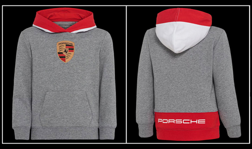 Hoodie enfant Porsche Ecusson Matière 50% Coton / 50% polyester - Couleur Gris / Rouge Klaxon cousu sous l'écusson jusqu'à la taille 6-7 ans Porsche WAP205RESS 89,95 € TTC / Incl. Taxes