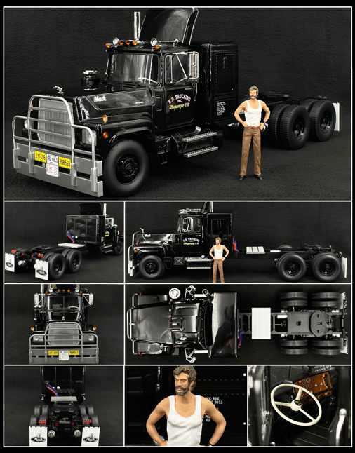 Camion Mack RL 700L 1974 + Figurine Rubber Duck - Film "Le Convoi" Noir 1/18 - Road Kings RK180171 Figurine en résine 1/18 - Road Kings RK18A014
