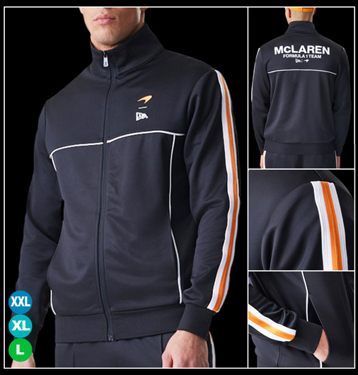Veste homme McLaren F1 - Tailles L / XL / XXL seulement Fermeture zippée - 2 poches latérales - Couleur Noir Col montant - Finitions côtelés New Era 60714775 89,95 € TTC / Incl. Taxes
