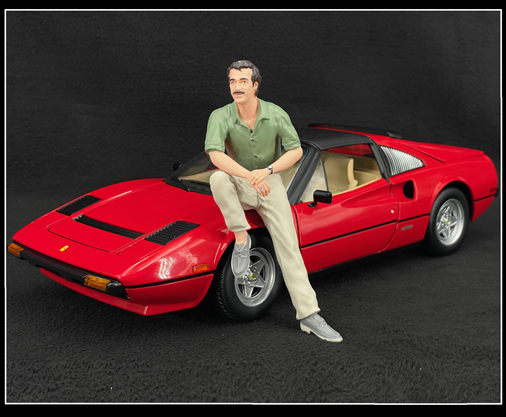Duo Ferrari 308 GTS Quattrovalvole 1982 + Figurine Thomas Magnum Série TV "Magnum" Rouge 1/12 - KK Scale KKDC120271 Figurine en résine 1/12 - KK Scale KKFIG026