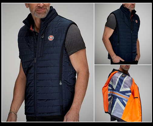 Veste sans manches homme Gulf 3 poches extérieur fermeture par zip - Poche intérieur par pression Drapeau Union Jack imprimé sur la doublure Couleur : Bleu Marine - Matière : 100% Polyester 115 € TTC / Incl. Taxes