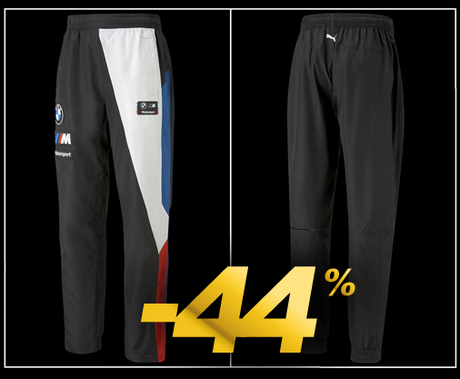 Pantalon homme BMW Motorsport Taille élastiquée et réglable par cordon de serrage intérieur - Couleur Noir / Blanc 2 poches latérales zippées - Matière 100% Polyester Puma 539819-01