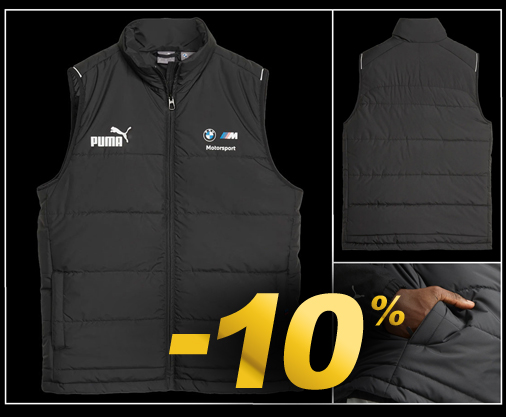Veste sans manches homme BMW Motorsport - Tailles L / XL / XXL seulement Matière 100% Polyester - Couleur Noir - Fermeture zippée - 2 poches latérales Puma 621211-01