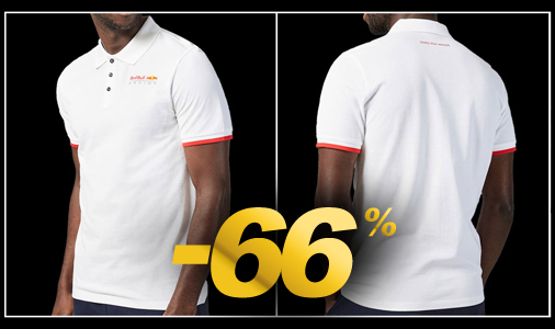 Polo homme Red Bull F1 - Tailles S / L / XL seulement Matière 100% Coton bio - Couleur Blanc / Rouge Red Bull 701202356-002