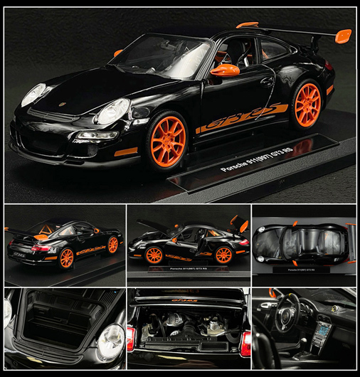 Porsche 911 GT3 RS 3.6 2007 Noir / Bandes Oranges 1/18 - Welly 18015BK 49,95 € TTC / Incl. Taxes