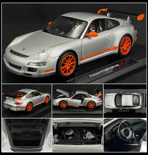 Porsche 911 GT3 RS 3.6 2007 Gris Argent / Bandes Oranges 1/18 - Welly 18015SI 49,95 € TTC / Incl. Taxes