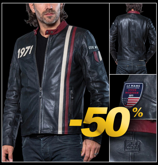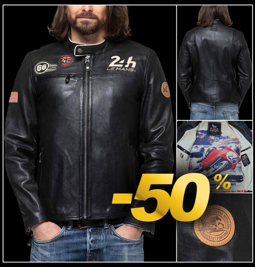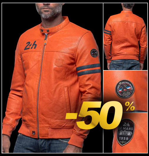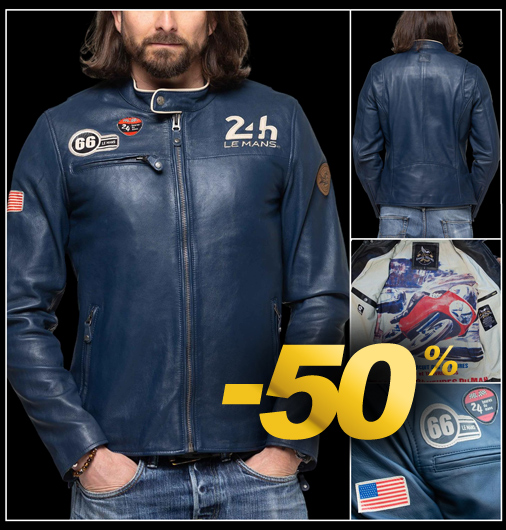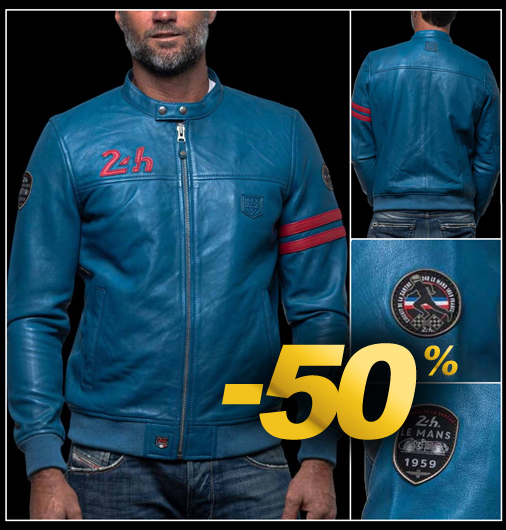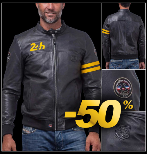 Veste en Cuir homme 24h Le Mans Matière 100% cuir de mouton - 2 Couleurs disponibles - Col pressionné Fermeture zippée - 2 Poches latérales zippées Classic Legend Motors 27499