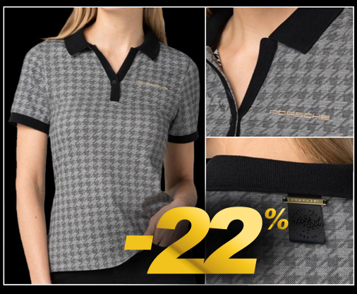 Polo femme Porsche 911 Sport Classic Matière 65% Polyester / 30% Viscose / 5% Elasthanne Motif style Pepita - Couleur Gris / Noir Porsche WAP321PHRT