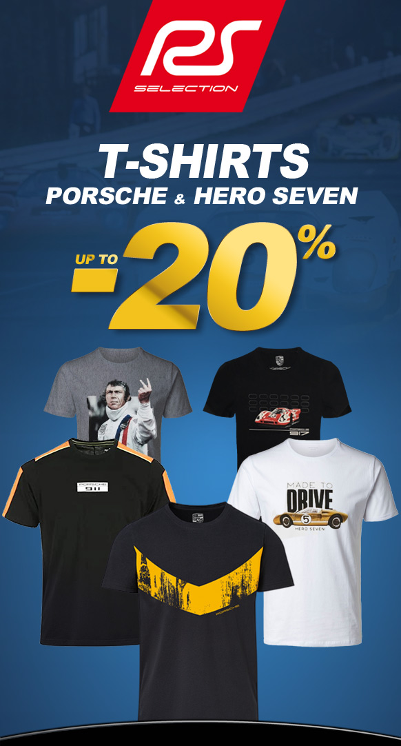 T-shirt mixte Porsche 917 KH n° 22 Martini Racing Présenté dans une boîte métallique exclusive - Carte descriptive Porsche 917 incluse Matière 100% Coton doux au toucher - Couleur Gris chiné Edition limitée - Porsche WAP558M0MR 54,95 € TTC / Incl. Taxes
