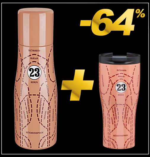 Set Mug Thermos + Bouteille Thermos Porsche 917 Cochon Rose En acier inoxydable à double paroi - Contenance Mug 0,45 L Contenance Bouteille 1 L - Compatible lave-vaisselle Porsche WAP0506250L917 + WAP0506900M917