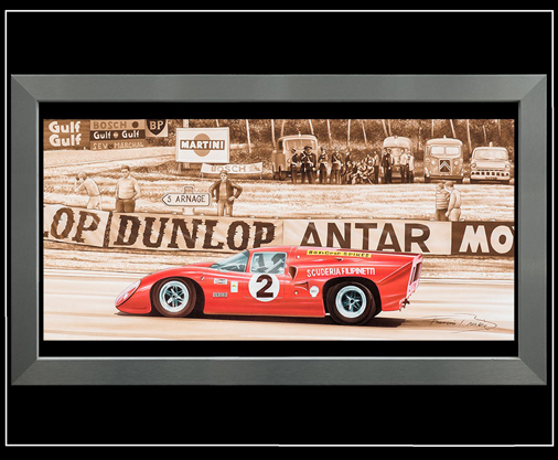 Poster Encadré Lola T70 Le Mans 1969 Reproduction d'une peinture originale de François Bruère 40 x 60 cm - Cadre aluminium brossé gris plomb Limitée à 300 exemplaires numérotés et signés 99,95 € TTC / Incl. Taxes