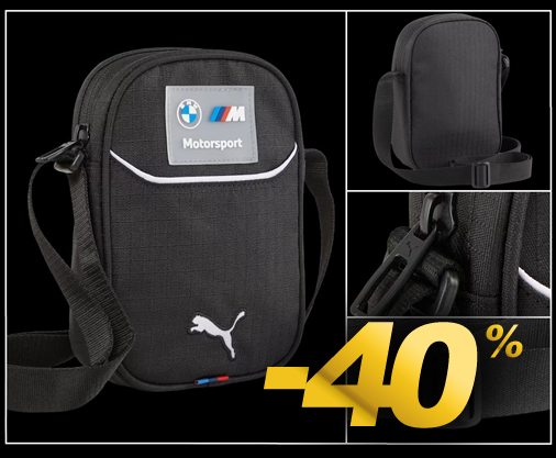 Sacoche BMW Motorsport Matière 100% polyester - Dimensions 13 x 0,5 x 19 cm - Bandoulière réglable Couleur Noir - Compartiment principal avec séparation et fermeture par zip Puma 090370-01