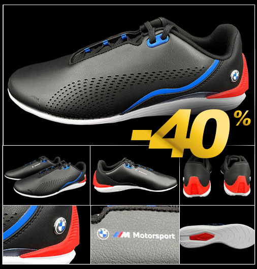 Chaussure homme BMW Motorsport Matière Simili Cuir - Doublure tissu d’excellente qualité Couleur Noir / Rouge - Semelle Drift Cat Decima Puma 307304-04