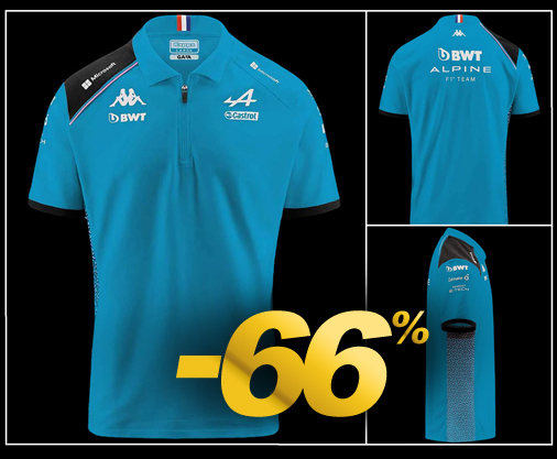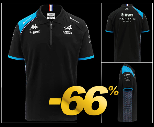 Polo homme Alpine F1 Matière 62% Coton / 34% Polyester / 4% Elasthanne - 2 couleurs disponibles Technologie Hydroway protection - Coupe cintrée - Col polo zippé Kappa 361C2RW