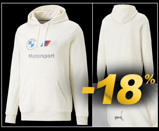 Hoodie homme BMW Motorsport - Tailles L / XL / XXL seulement Matière 66% coton / 34% polyester - Couleur Beige Capuche réglable - Poche kangourou Puma 538142-07