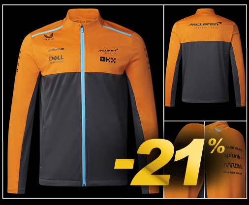 Veste homme McLaren F1 - Tailles M / XXL / 3XL seulement Matière 100% Polyester - Couleur Gris Phantom / Orange Papaye 2 poches latérales zippées McLaren TM2616