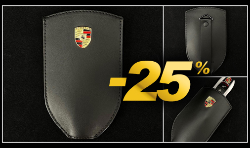 Etui Porte-clés Cuir Porsche Ecusson Porsche en métal - Dimensions 7 x 11 x 0,5 cm Cuir de vachette - Couleur Noir Porsche WAP0300400NSLT