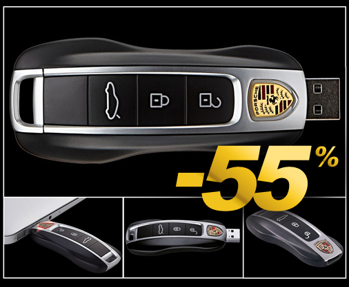 Clé USB Porsche Clé de contact Capacité de stockage 64 Go - Prise USB rétractable - Couleur Noir / chrome Porsche WAP0507150M001