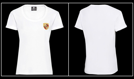T-shirt femme Porsche Ecusson Ecusson Porsche brodé sur la poitrine - Couleur Blanc Encolure ronde - Ourlet des manches retroussé Porsche WAP726NPOR 54,95 € TTC / Incl. Taxes