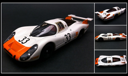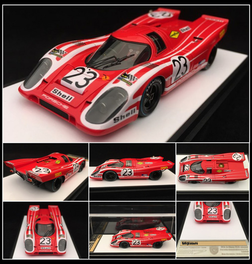 Dann kommen die Modelautos: eine kostengünstige 917K Gulf 1/8 Ausführung und verschiedene 1/43 Neuheiten, die ziemlich selten sind. Schließlich die neue "Make Up" Marke, mit eimem hochwertigen Finish, für unsere Kunden mit höchsten Erforderungen.