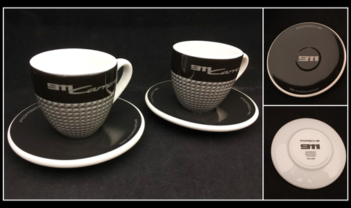Set 2 Tasses expresso Porche 911 Carrera 2019 Edition limitée à l'occasion de la présentation de la 911 type 992 En porcelaine - Passe au lave-vaisselle - Couleur blanc / gris / noir Hauteur 5.4 cm - Diamètre 5.8 cm - Diamètre soucoupe 10 cm Made in Germany - Porsche Design WAP0509450K Edition limitée - 5000 exemplaires numérotés 39,95 € TTC / Incl. Taxes
