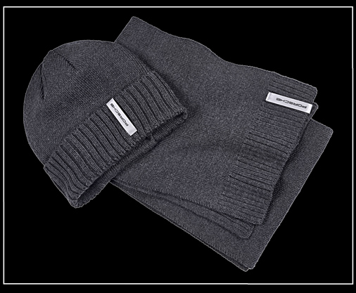 Ensemble Bonnet + Echarpe Porsche mixte Boîte de présentation luxueuse Bonnet Porsche à revers 58 cm - Echarpe 190 cm x 20 cm Chaud et confortable - Laine côtelée - Couleur gris anthracite Matière 50% laine Merinos / 50% laine acrylique - Lavable 30°C Porsche Design WAP9400010K 99,95 € TTC / Incl. Taxes