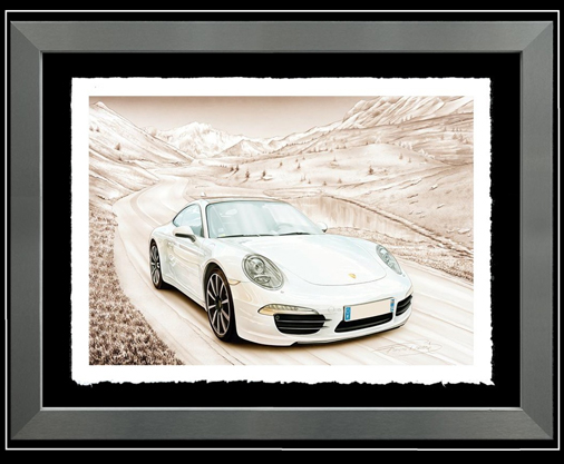 Poster Encadré Porsche 911 Reproduction d'une peinture originale de François Bruère 40 x 60 cm - Cadre aluminium brossé gris plomb Limitée à 300 exemplaires numérotés et signés 99,95 € TTC / Incl. Taxes