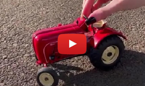 Tracteur Porsche Diesel Master 419 avec Remorque Jouet tôle avec mécanisme - Remontoir à clé - Roues directrices Frein à main et boîte de vitesse fonctionnelle : 3 marches avant - 1 marche arrière Avec livret historique - Rouge 1/25 - Kovap 0321 99,95 € TTC / Incl. Taxes