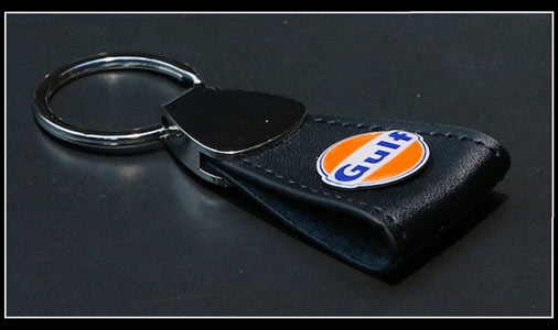 Porte-clés cuir Gulf Support cuir de qualité supérieure Couleur : noir Longueur totale 9,5 cm Pièce de cuir de 4,5 x 3,5 cm Logo métal de 2,2 cm Anneau métal de 3 cm 12 € TTC / Incl. Taxes