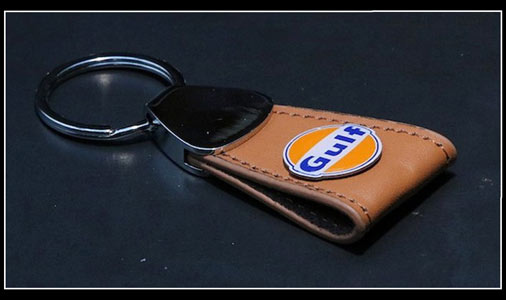 Porte-clés cuir Gulf Support cuir de qualité supérieure Couleur : brun Longueur totale 9,5 cm Pièce de cuir de 4,5 x 3,5 cm Logo métal de 2,2 cm Anneau métal de 3 cm 12 € TTC / Incl. Taxes