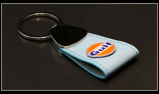 Porte-clés cuir Gulf Support cuir de qualité supérieure Couleur : bleu Gulf Longueur totale 9,5 cm Pièce de cuir de 4,5 x 3,5 cm Logo métal de 2,2 cm Anneau métal de 3 cm 12 € TTC / Incl. Taxes