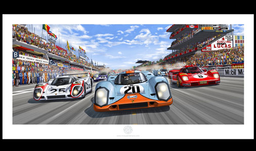 Finally, after the new Gulf Racing bags, Selection RS offers you the 2 stunning BD Le Mans prints including "Le Depart", our favorite in large size 50x100 cm.