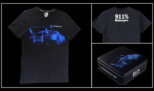 T-shirt mixte - Porsche 911 RSR Motorsport Edition limitée 911 courses endurance GT Inscription Porsche blanche sur la poitrine Inscription 911 % Motorsport au dos Matière extérieure respirante, coupe-vent et hydrofuge Couleur noir / bleu Matière 100% Coton doux au toucher Présenté dans une boîte métallique exclusive Porsche WAP809XXX0F 49,95 € TTC / Incl. Taxes |