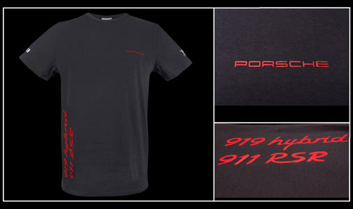 T-shirt Porsche 919 Hybrid / 911 RSR Le Mans Motorsport Collection Inscriptions devant dos poitrine manches Couleur gris foncé / rouge Matière 100% Coton doux au toucher WAP799XXX0F 19,95 € TTC / Incl. Taxes