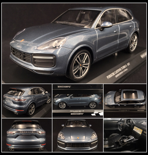 Porsche Cayennes Turbo S 2017 Bleu métallisé 1/18 - Minichamps 155066071 Edition limitée - 300 exemplaires 89,95 € TTC / Incl. Taxes
