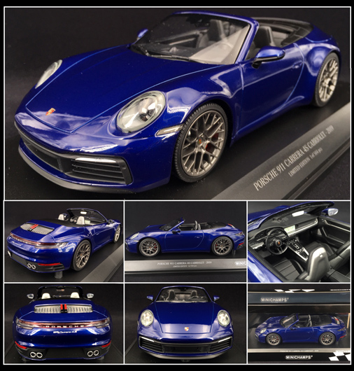 Porsche 992 Carrera 4S Cabriolet 2019 Bleu gentiane 1/18 - Minichamps 155067332 Edition limitée - 504 exemplaires 89,95 € TTC / Incl. Taxes