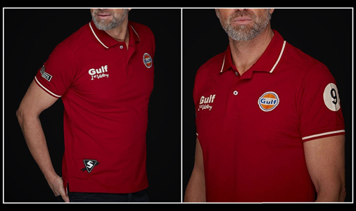 Polo homme Gulf - Le Mans Victory Inscription Gulf en souvenir de la victoire de 1968 Matériel 65% coton / 35% polyester Couleur Rouge merlot / filets blancs 79,90 € TTC / Incl. Taxes