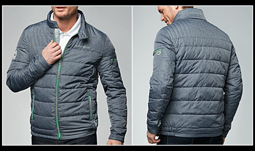 Veste homme Porsche Carrera RS 2.7 Veste matelassée légère - Rembourrage haute performance Couleur gris / vert vipère - Matière 66 % nylon / 34 % polyester Porsche WAP957