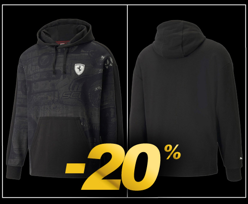 Hoodie homme Ferrari by Puma Capuche avec cordon de serrage - Grande poche avec 2 entrées latérales Couleur Noir - Matière 70% coton / 30% coton recyclé Puma 533718-01