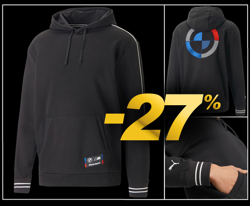 Hoodie homme BMW Motorsport by Puma Capuche réglable par cordon de serrage - Couleur Noir - Poche kangourou Taille et poignets côtelés - Matière 68% coton / 32% polyester Puma 538112-01