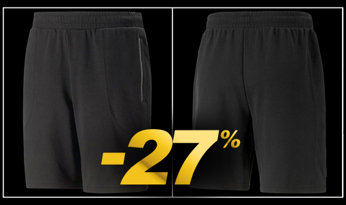 Short homme Mercedes-AMG F1 by Puma Couleur Noir / Gris - Matière 77% coton / 23%¨Polyester Ceinture élastique - 2 poches latérales Puma 538474-01