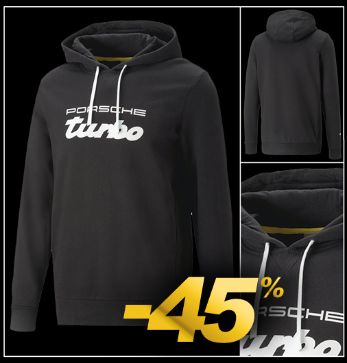 Hoodie homme Porsche Turbo by Puma Couleur Noir - Matière 70% Coton / 30% Polyester Capuche avec cordon de serrage blanc Puma 620242-01