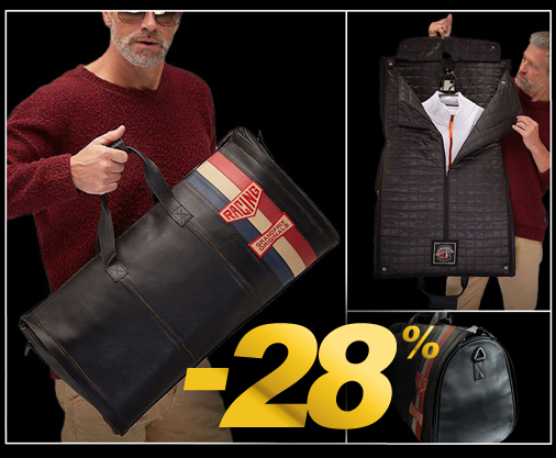 Sac de Voyage en Cuir Style Racing Matière 100% Cuir - Doublure 100% Nylon - Couleur Noir - Bandoulière amovible 4 poches intérieures - Grande poche intérieure avec un anneau métallique